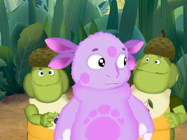 Гусеницы решили поиграть в муравьев. Лунтик дал клятву защищать штаб гусениц, но те заснули на земляничной поляне. А Лунтик простоял на посту до вечера.