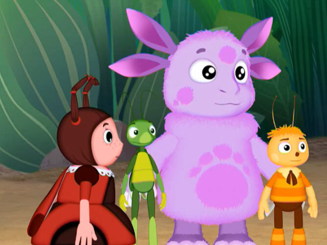 Лунтик и Кузя делают огромную пирамиду, чтобы победить гусениц.
