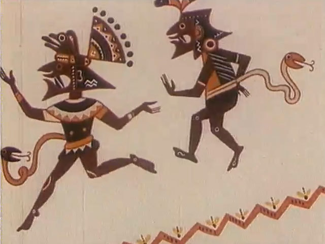 Фильм воспроизводит легенды перуанских индейцев при помощи старинных рисунков.Режиссер: В. Пекарь. Язык: Русский